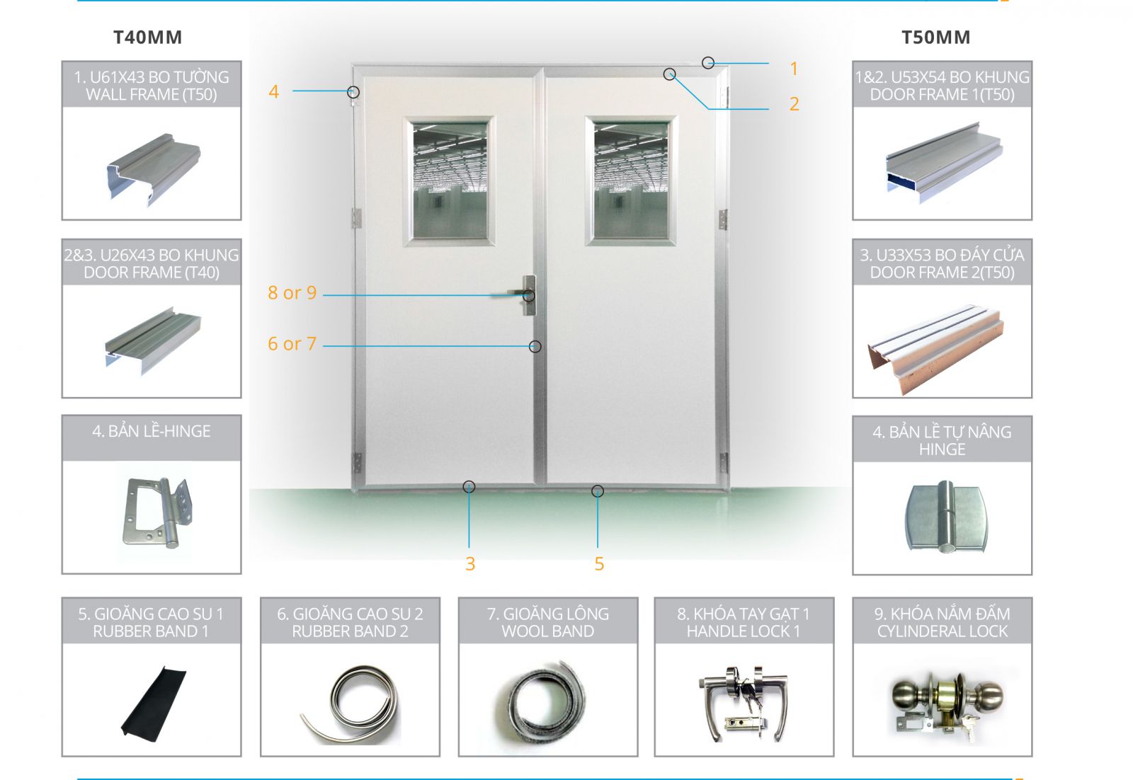 - Cửa giữ nhiệt cho phòng sạch, kho mát, kho đông, kho lạnh