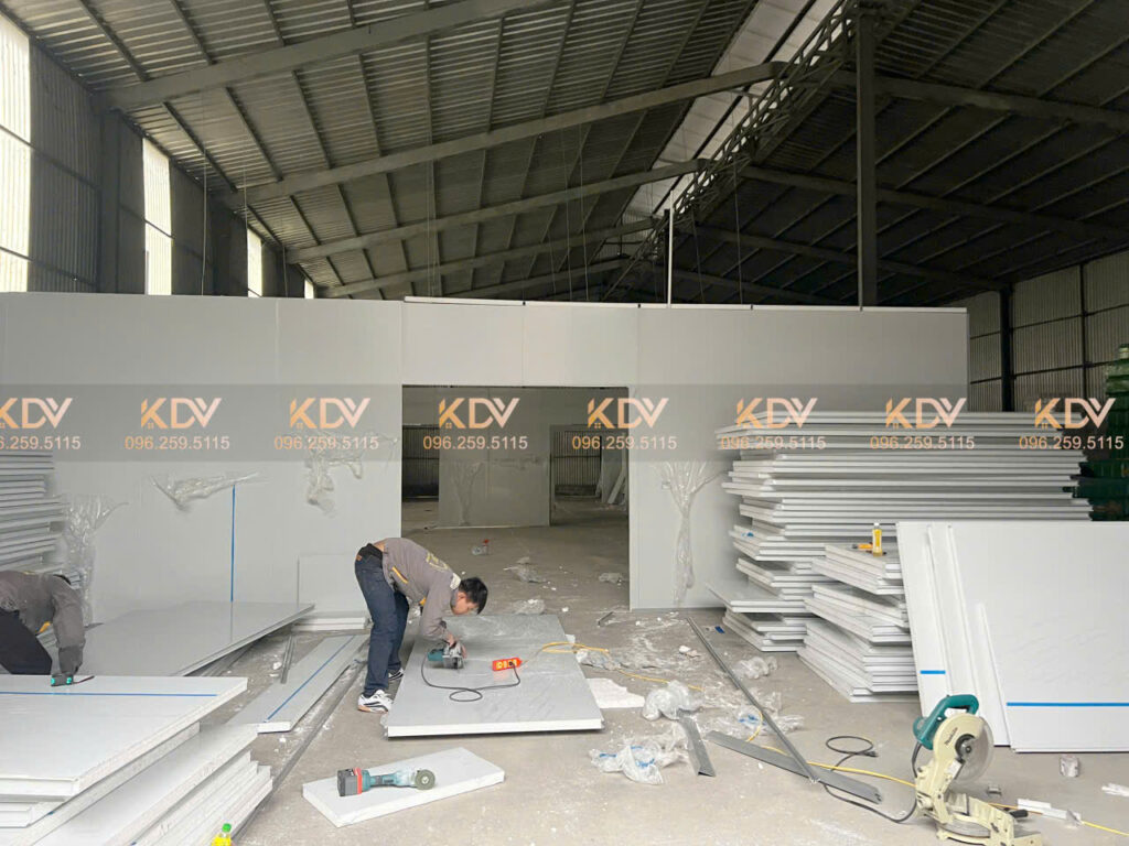 Hình ảnh thi công Trần – Vách cho nhà xưởng chế biến nông sản tại Gia Lâm